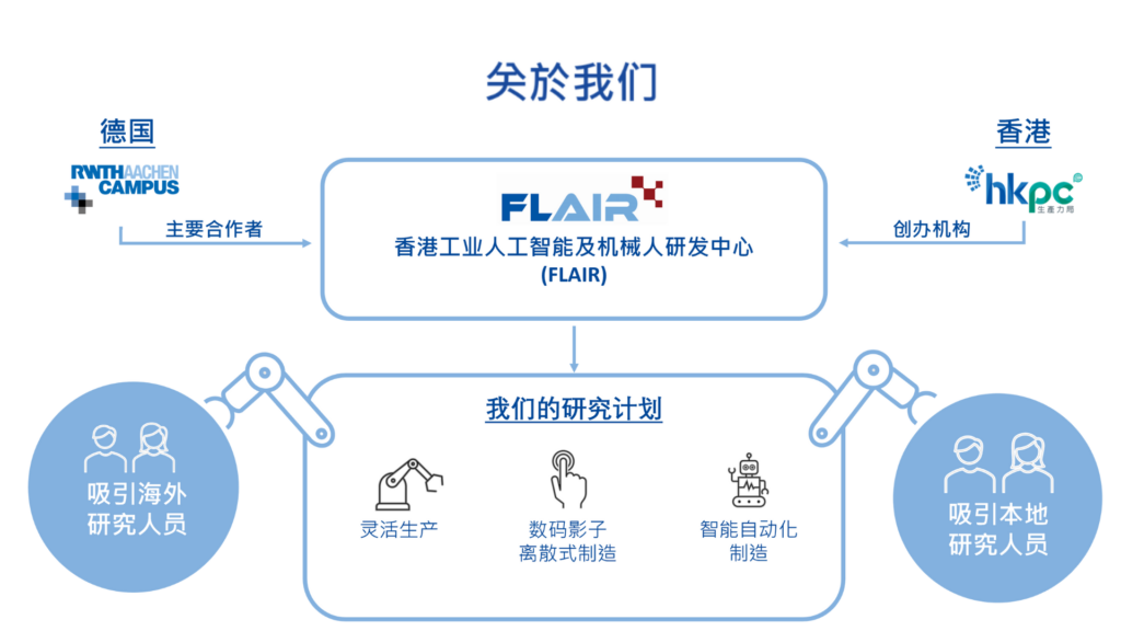 香港生产力促进局 (生产力局) 于香港科学园建立香港工业人工智能及机械人研发中心(FLAIR),集中发展人工智能及机械人科技,旨在支持香港发展成为国际创科中心。